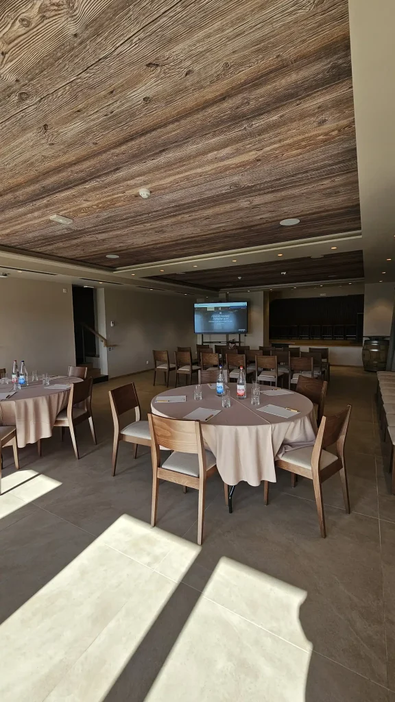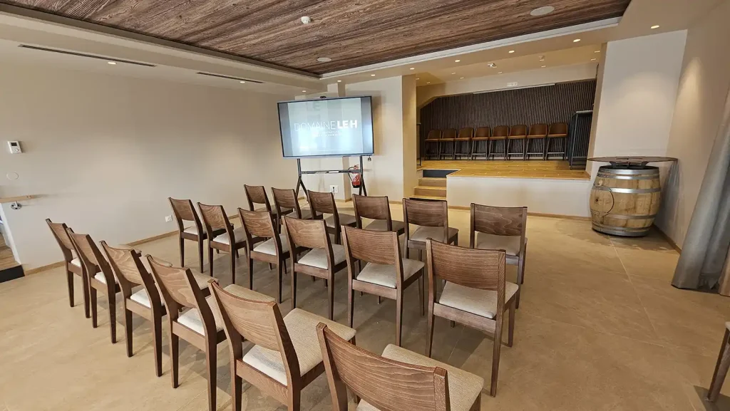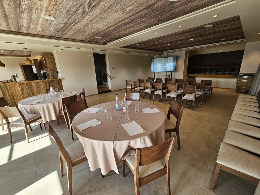 le caveau Bergbrochen, avec ses 80 m², est un espace polyvalent parfaitement adapté à l’organisation de réunions ou de séminaires. Modulable et conviviale, elle peut également se transformer en salle de danse ou accueillir un vin d’honneur dans une ambiance chaleureuse.