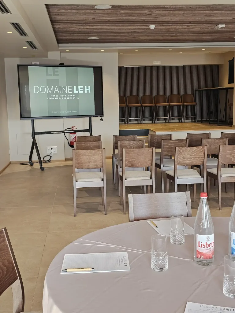 Pensées pour accueillir vos séminaires, réunions et ateliers en toute simplicité, nos salles disposent d’un équipement complet : écran, vidéoprojecteur, paperboard, supports de prise de notes, mobilier modulable, système de sonorisation et wifi haut débit. Tout est réuni pour garantir des conditions de travail optimales.